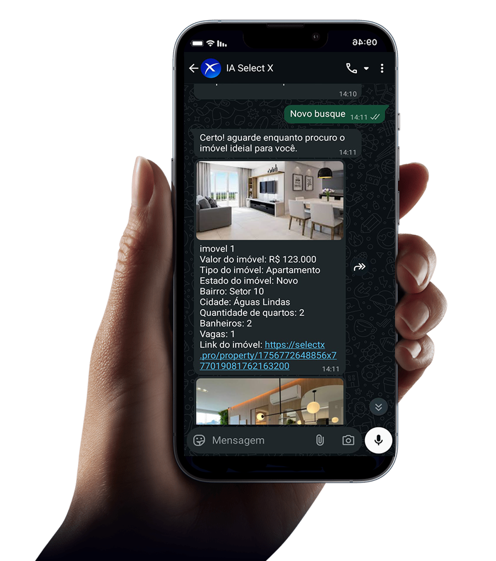 Com a Select X consegui organizar todos os meus imóveis em um só lugar. A IA no WhatsApp agiliza muito meus cadastros e me dá mais tempo para atender clientes.
